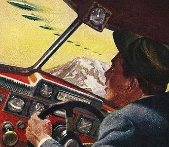 In that year a private pilot by the name of Kevin Arnold was flying near Mount Rainier in Washington State and reported seeing disc-like objects. This was reported by the press as flying saucers. That term was previously used in a comic magazine and became associated with aliens visitors to Earth.