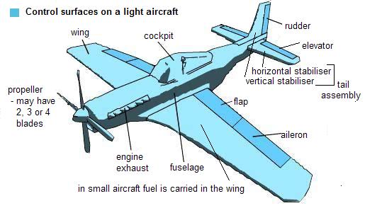 Unlike ground vehicles the aeroplane can move in three dimensions. The axes about which this 3D motion can occur is illustrated below.