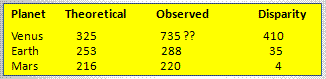 The table below shows the respective mean temperatures of Venus, Earth and Mars: